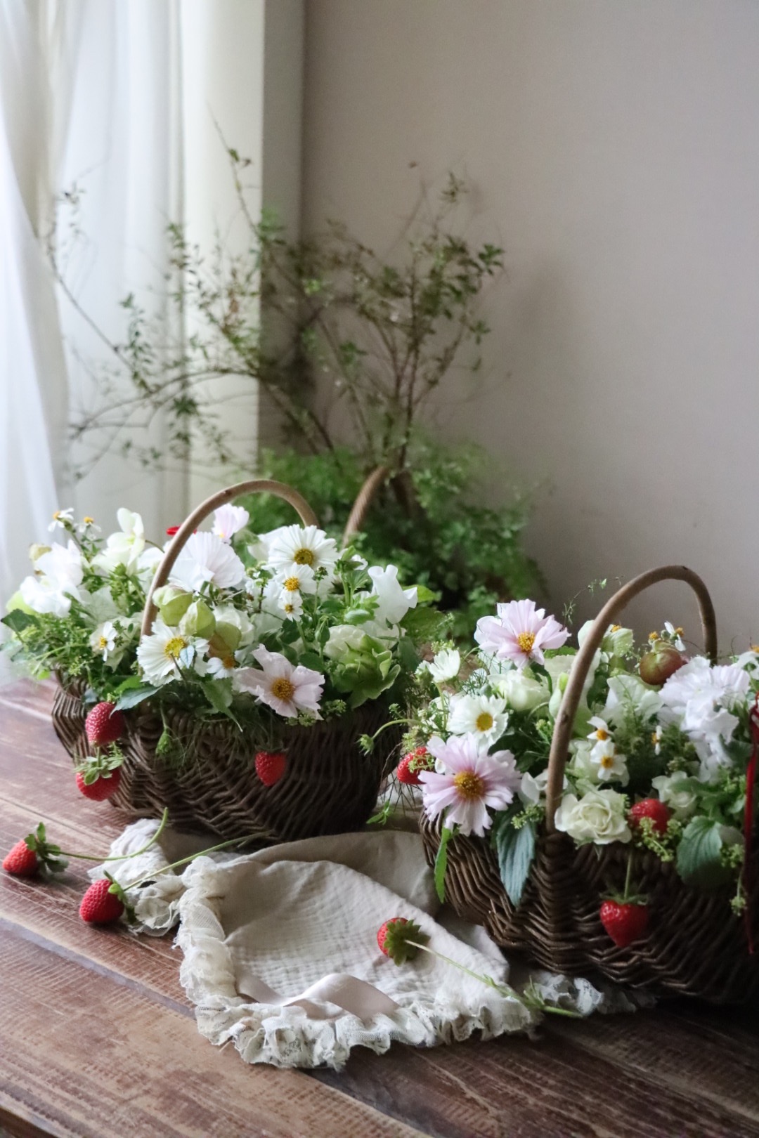 在日本的時候,特別喜歡的一個提籃作品,就是加入了新鮮草莓的的純白色提籃。