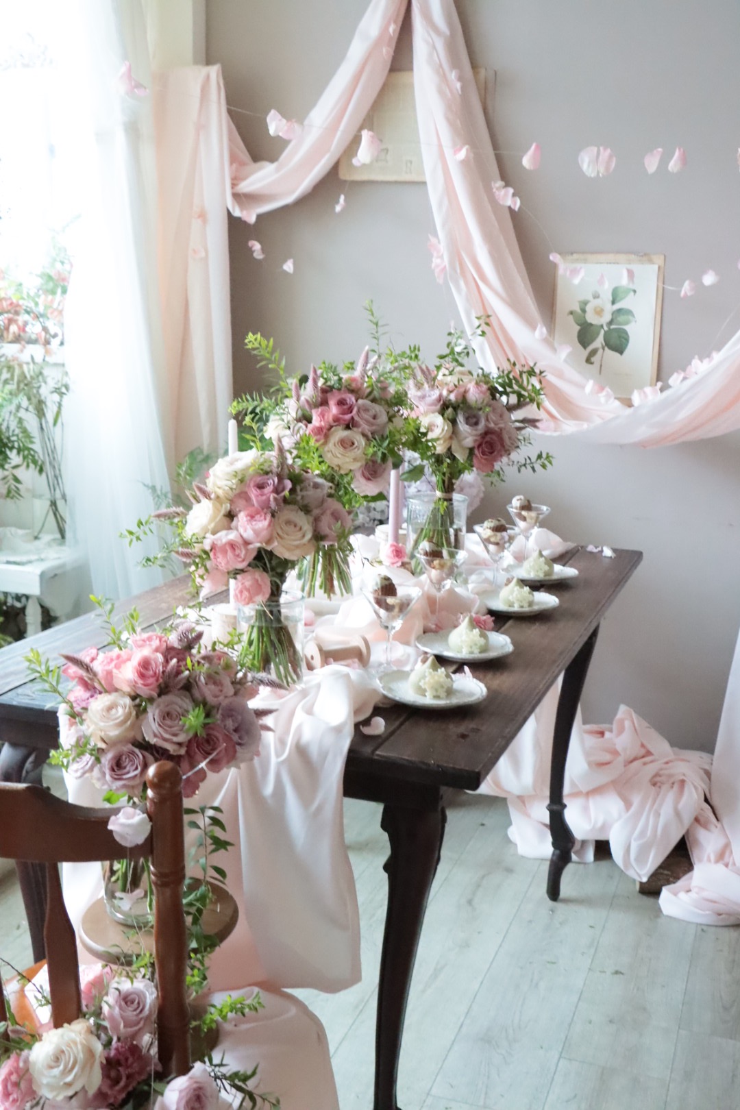 *花色系會根據當週季節花卉搭配,照片為過往同課程作品風格示範,僅供參考,實際會依照當月花材改變佈置設計與花束