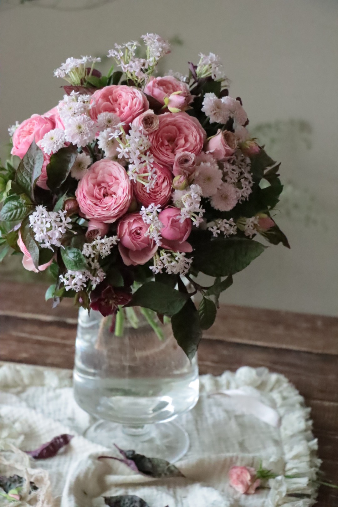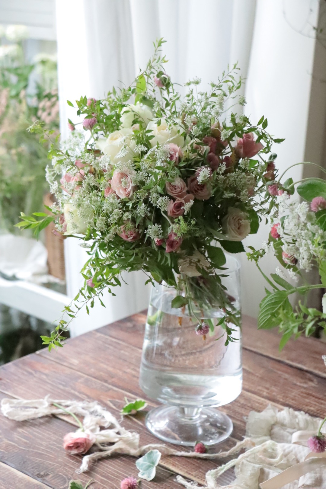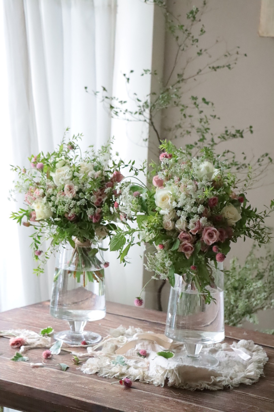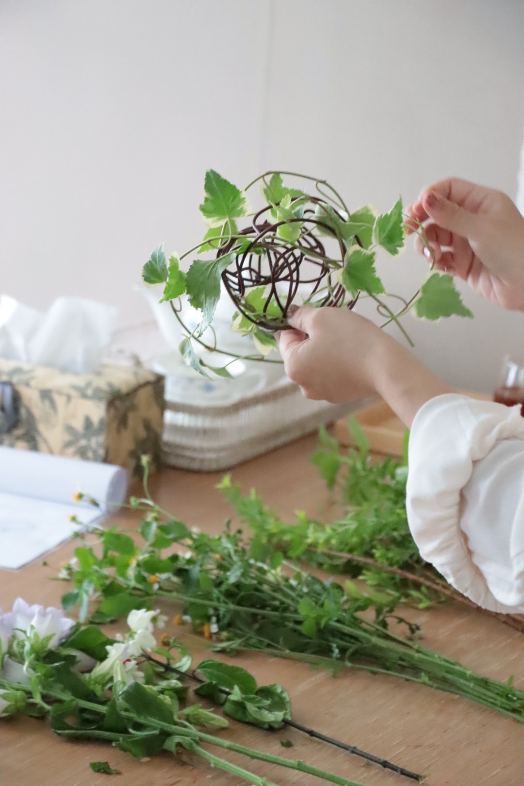 初階班主旨在熟悉日本花屋風格的配花模式以及綁花的手法。